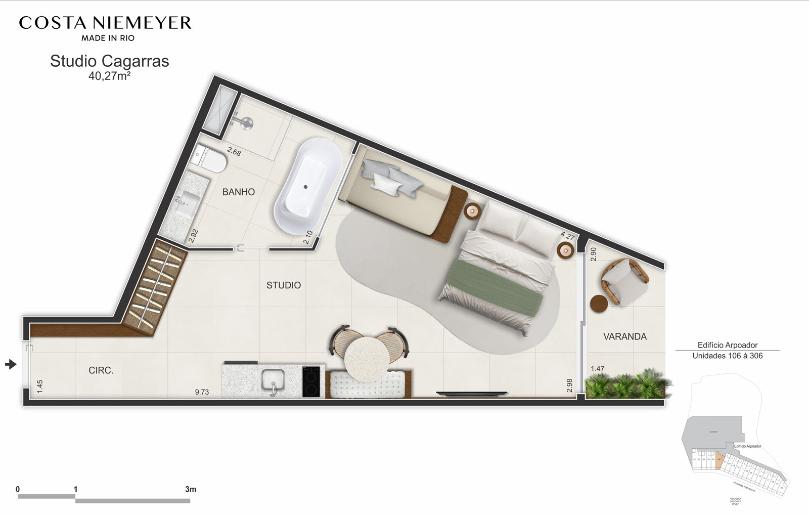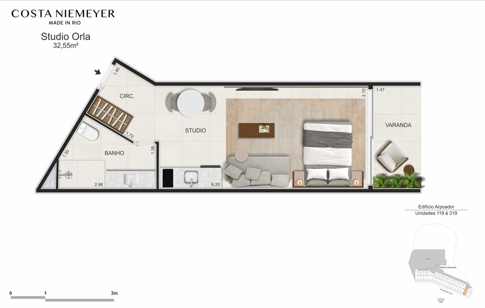 “Todas as imagens, perspectivas, ilustrações e plantas constantes deste material constituem mera representação artística, com caráter exclusivamente ilustrativo, não configurando obrigação de entrega com fidelidade absoluta. Dessa forma, poderão ocorrer alterações de cor, formato, textura, posicionamento, metragens, acabamentos e demais especificações, em decorrência do desenvolvimento e compatibilização dos projetos, exigências técnicas e/ou determinações de órgãos competentes. O porte da vegetação das áreas comuns observará o projeto paisagístico, sendo implantado com plantas e árvores jovens, as quais, quando adultas, tenderão a apresentar características semelhantes às ilustradas. As especificações detalhadas encontram-se no Memorial Descritivo. Responsáveis técnicos: PREO: Ricardo Hernandes Rebelo Pinto — CREA: 2005596159. PRPA: Sérgio Gattáss — CAU: A1363-3. PRPA: Elizabeth Vasquez Guedes — CAU: A7247-8. O Memorial de Incorporação encontra-se sob o nº 595520 no 2º Ofício do Registro Geral de Imóveis. “